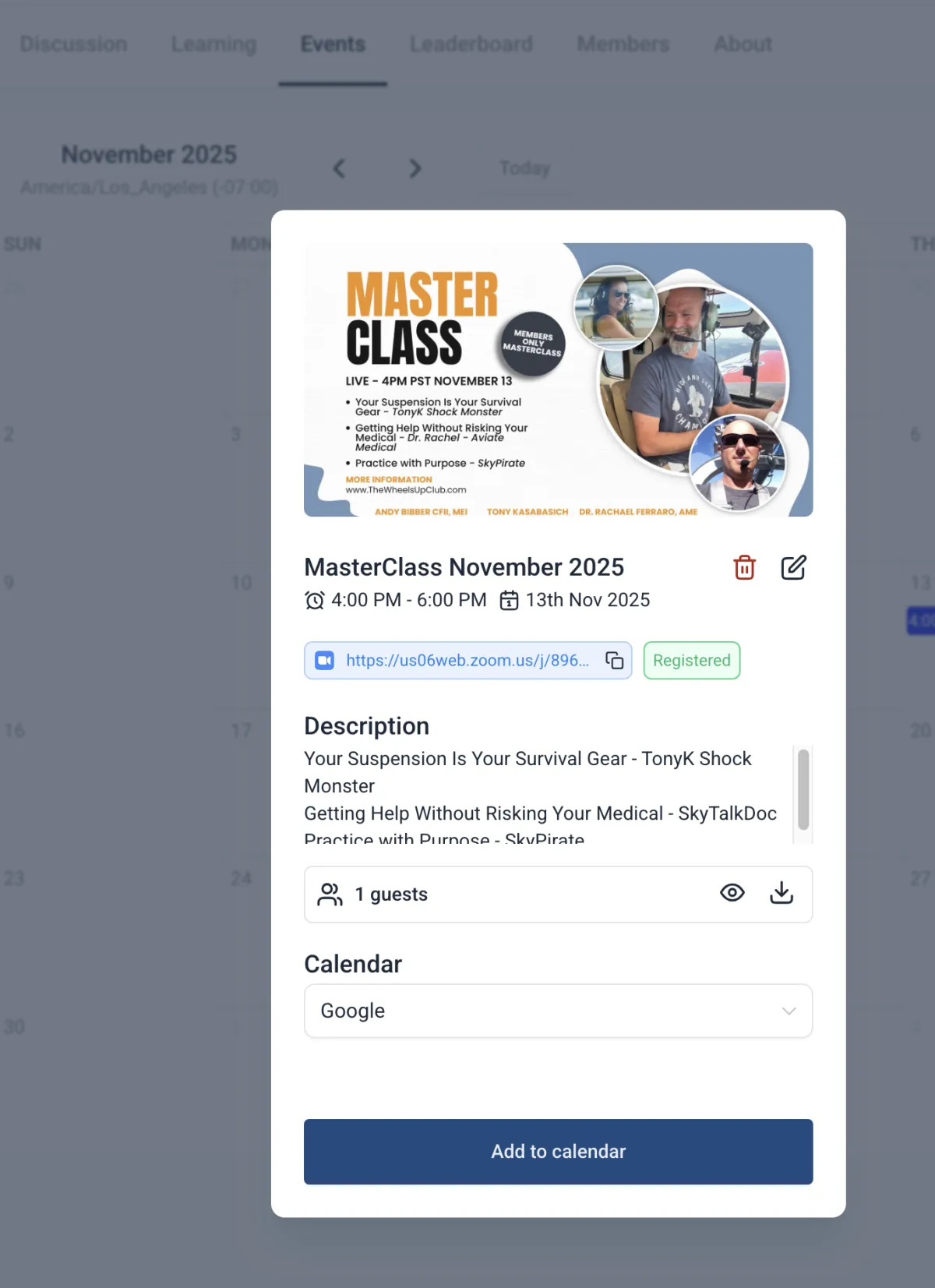 Most masterclasses are fully included with your membership. If we bring in a high-profile guest who charges a speaker fee (think medical examiner, bush legend, or FAA insider), there may be a small one-time ticket price — but you’ll always know upfront, and members will get first access at the lowest rate. Access to replays is based on leaderboard.